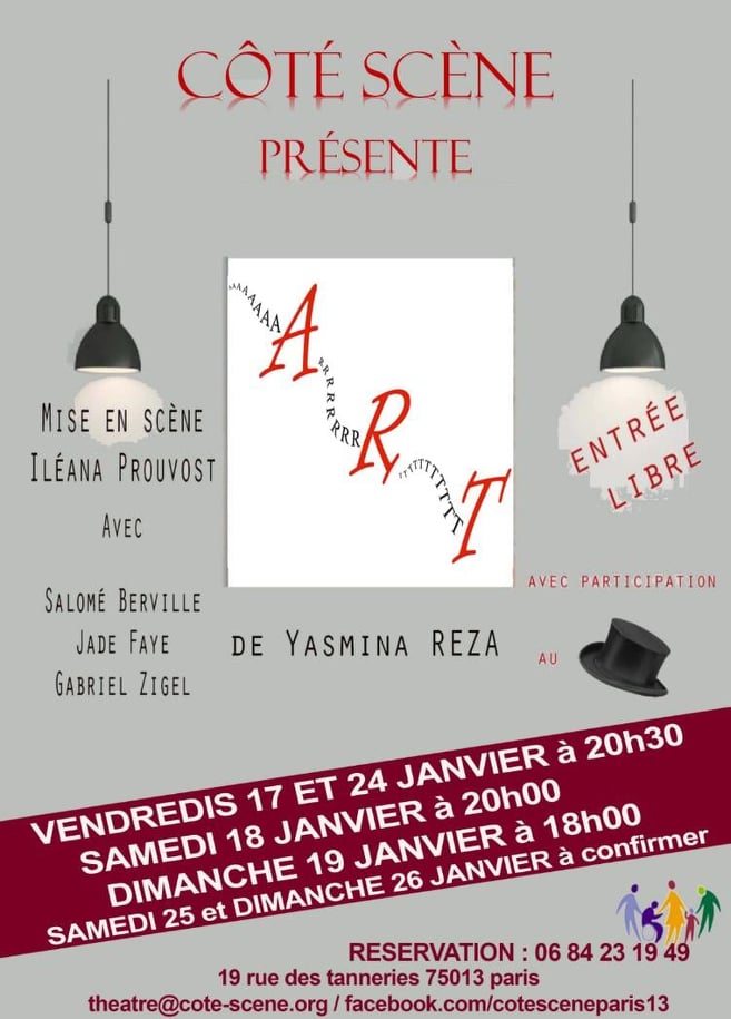 De décembre 2019 au 8 mars 2020 : Art, de Yasmina Reza, version mixte (adaptation d’Iléana Prouvost). Avec Salomé Berville, Jade Faye et Gabriel Zygel.