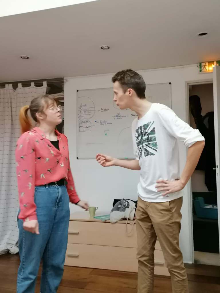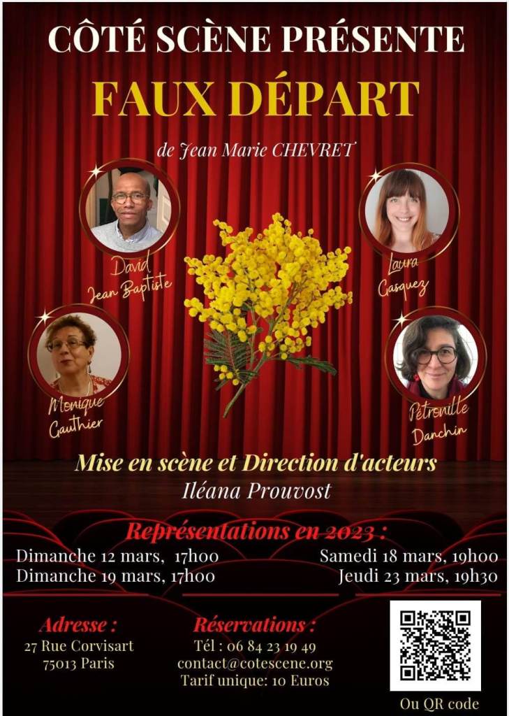 Faux départ ………Y avait-il dans ce titre une connotation qui voulait évoquer « changez de cap, changez de texte » ? Nous aurions pu le croire car oui, c’est un projet qui a vécu, qui a traversé des épreuves : covid / différents lieux de répétitions / départ en province de deux comédiens, des hospitalisations mais d’un départ difficile nous voilà bien arrivés !!!