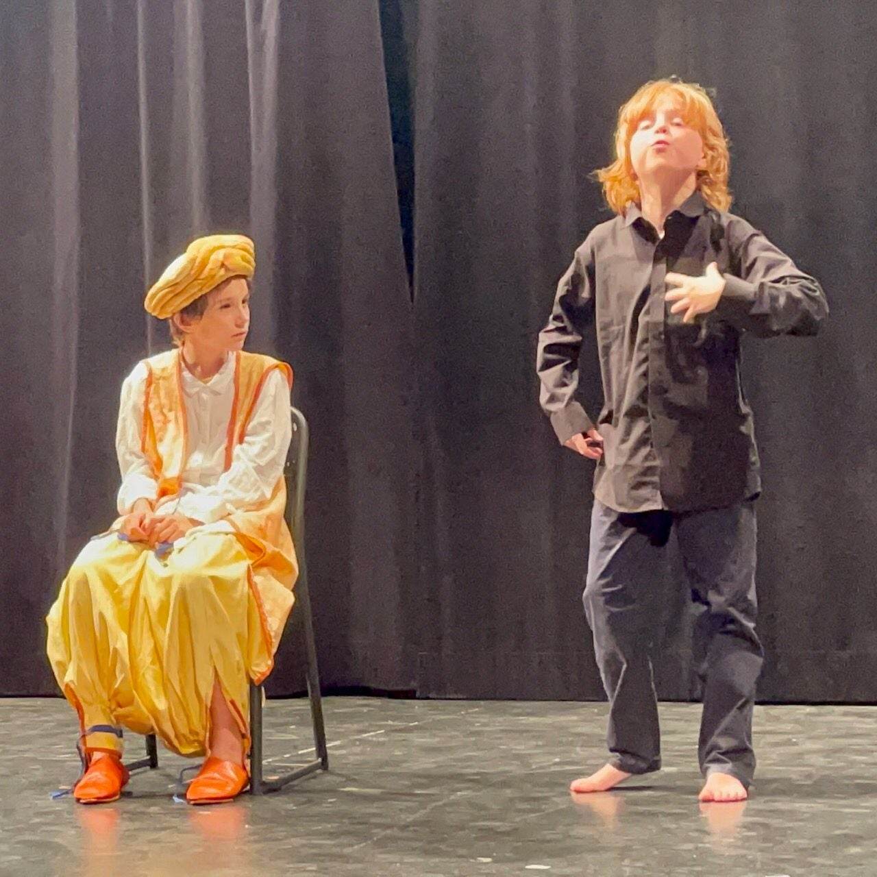 Des p’tits comédiens qui se concertent, échangent, se concentrent sur le plateau, qui font un dernier point avant la répétition générale ! Pour vous servir cher public ! (Vous verrez des photos des répétitions et du spectacle dans l’onglet Galerie 5/7 ans)